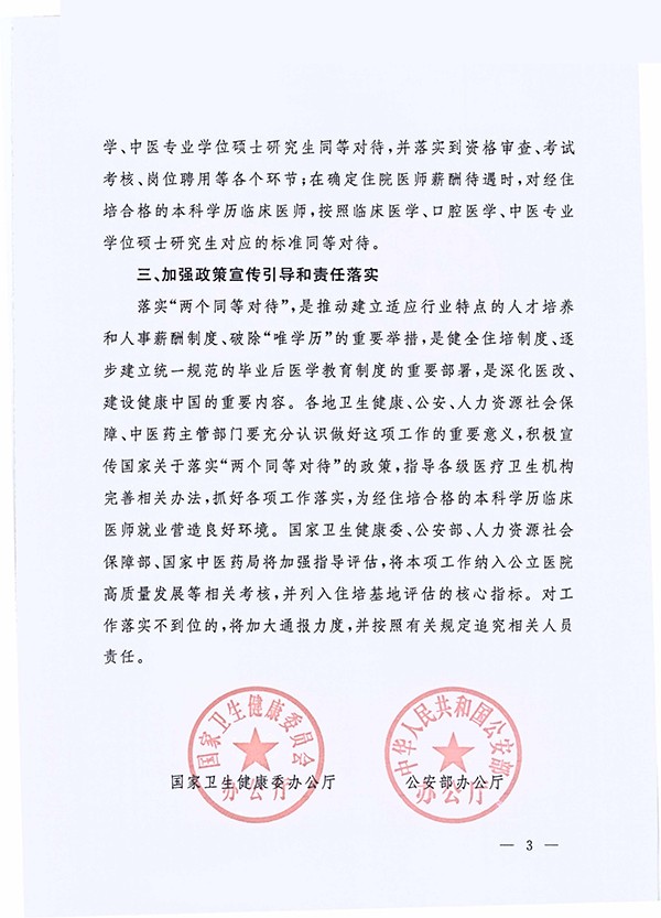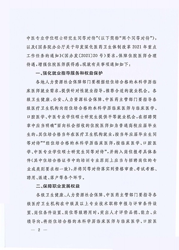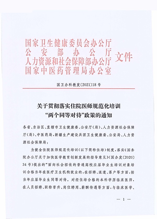 關于(yu)貫徹落實住院醫(yī)師規範化培訓“兩箇(ge)同等(deng)對待”政策的(de)通(tong)知