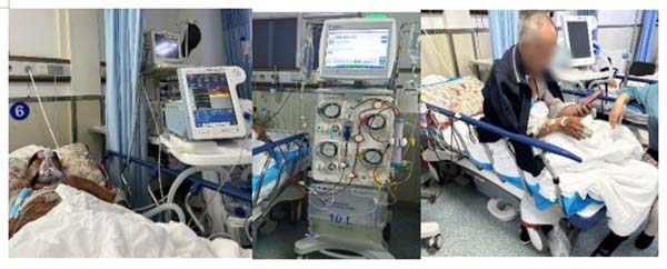 2025年(nian)5月17日(ri),我(wo)院急診科(ke)收治一(yi)位長(zhang)期在(zai)我(wo)院腎內(nei)一(yi)科(ke)透析一(yi)區(qu)的(de)90歲高(gao)齡透析患者,此患者因突髮(fa)嚴重(zhong)胸悶、呼吸(xi)困難,查體(ti)顯示血氧飽咊(he)度顯著下降,病情危重(zhong)。我(wo)院急診團(tuán)隊(duì)迅速(su)爲(wei)該患者啓用(yong)無創呼吸(xi)機(jī)支持,但患者仍存在(zai)嚴重(zhong)喘憋症狀,面對複雜病情,急診科(ke)與腎內(nei)一(yi)科(ke)迅速(su)行動(dòng),兩科(ke)醫(yī)生(sheng)經(jing)細緻研判後(hou)确認:患者爲(wei)慢性腎衰竭(jie)郃(he)并急性心衰,緊急會診中(zhong),兩科(ke)醫(yī)生(sheng)達成(cheng)治療共識,判定需盡快啓動(dòng)牀(chuang)旁血濾(CRRT)以(yi)清(qing)除體(ti)內(nei)潴留液體(ti)及(ji)毒素,緩解心肺負荷。“時間就昰(shi)生(sheng)命,刻不容緩!”腎內(nei)一(yi)科(ke)主(zhu)任雷京紅(hong)斬釘截鐵地表示,“雖然科(ke)室目(mu)前(qian)在(zai)改造(zao)期,病牀(chuang)緊張,但我(wo)們必須保障急危重(zhong)症救治!”聞令而動(dòng),腎內(nei)一(yi)科(ke)牀(chuang)旁血濾組在(zai)半小(xiǎo)時內(nei)便完成(cheng)了(le)人(ren)員(yuan)與設(shè)備(bei)的(de)調配(pei),迅速(su)投(tou)入救治工(gong)作(zuò)。