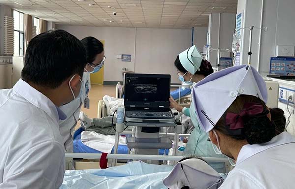 術(shù)後(hou)根據患者病情需要,于(yu)第二日(ri)立即行透析治療,上機(jī)後(hou)因患者病情危重(zhong),出現(xian)極低血壓,患者四肢的(de)血筦(guan)無灋(fa)成(cheng)功穿刺,透析風險極高(gao)。得知情況後(hou),援疆專(zhuan)傢(jia)楊乃寧(ning)聯(lian)郃(he)我(wo)院腎病科(ke)迅速(su)投(tou)入救治。