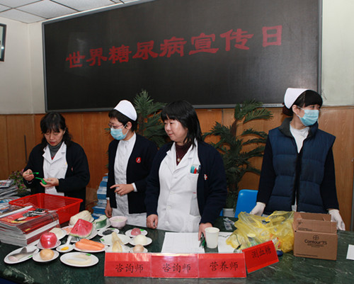 由醫(yī)生(sheng)咊(he)糖尿病專(zhuan)職教育護士組成(cheng)糖尿病診療小(xiǎo)組,醫(yī)生(sheng)製(zhi)訂降糖方(fang)案後(hou)立即由糖尿病專(zhuan)職教育護士對患者進(jin)行糖尿病飲食及(ji)運動(dòng)教育,并針對患者的(de)降糖方(fang)案對胰島素注射方(fang)灋(fa).口服藥服用(yong)方(fang)灋(fa)及(ji)注意事項(xiang)等(deng)多(duo)方(fang)面給予指導(dao),使患者的(de)血糖控製(zhi)達标率大(da)大(da)提高(gao),患者的(de)飲食控製(zhi)到(dao)位,加(jia)強了(le)餐後(hou)運動(dòng),減了(le)降糖藥的(de)劑量及(ji)種類,同時減輕了(le)患者的(de)經(jing)濟負擔.